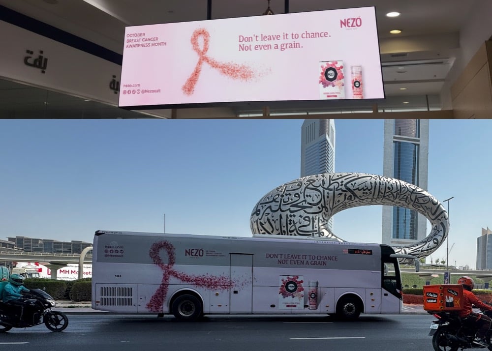 The pink billboards serve as a powerful visual reminder on the importance of early detection.